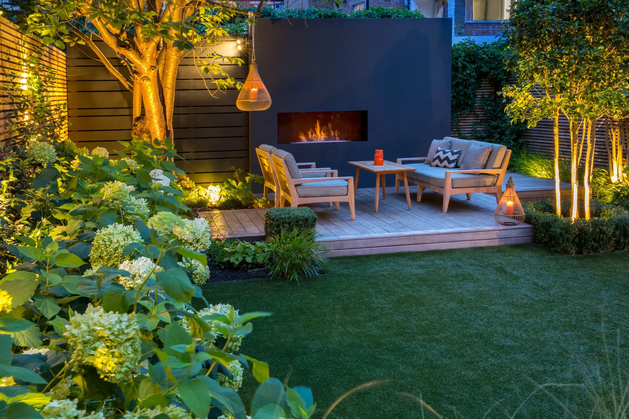 Utilise light-colored stones, gravel, or reflective surfaces like mirrors or metallic accents to brighten up shaded areas and bounce light around the garden, creating a sense of depth and enhancing the ambiance.