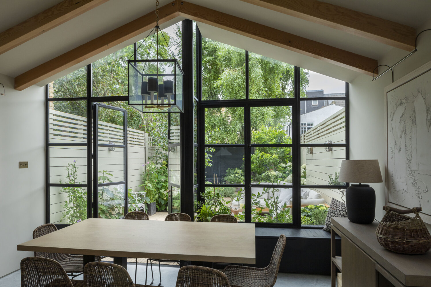 Transforming an Urban Retreat: A Harmonious Blend of Tradition and Modernity that elevates the Outdoor Experience. An elegant garden that looks as good from indoors as out, with spaces to sit, read a book and enjoy the surroundings